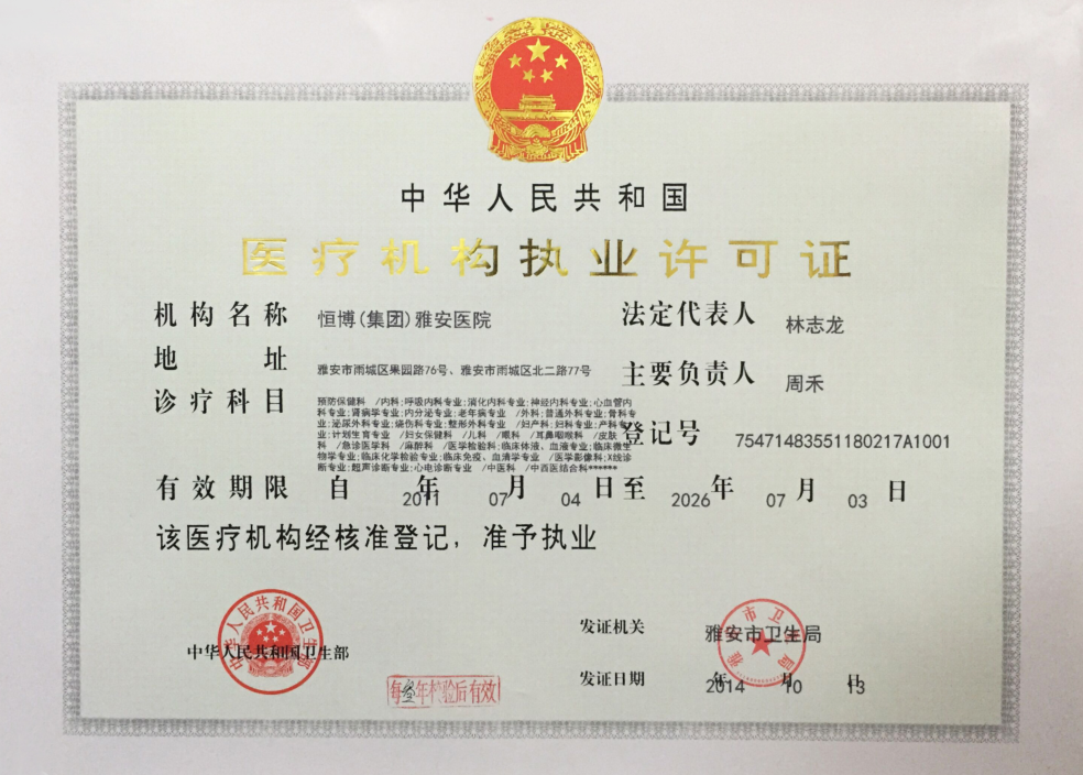 恒博(集团)雅安医院,是国家级二级综合医院、国家级爱婴医院、非营利性医疗机构,是市区二级医疗保险、六县两区新型农村合作医疗保险定点医院。先后引进国内外先进技术设备,开展各种特色医疗项目!《《《了解更多技术设备可点击查看