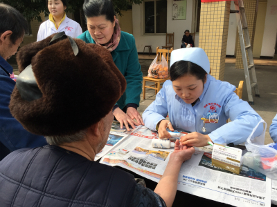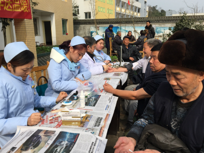 在活动的现场,医生们帮老人们量血压、测血糖、做B超,护士们帮着打下手。就连医院院长也没闲着,二话没说挽起袖子就上阵,包的饺子那可是馅即多又好看,经过多人的齐心协力,没几个小时,医院带来的四十斤饺子馅全都包完了。