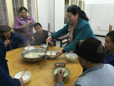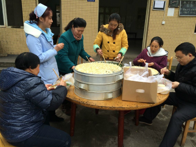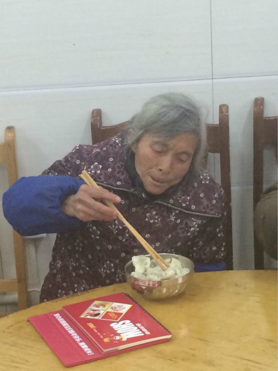 在煮饺子的时间里,为了不让老人无聊,医院还为这些老人准备了节目表演,唱歌跳舞做游戏,平时宁静的小山村,今天却充满了欢声笑语。热腾腾的饺子终于起锅了,院长将香喷喷的饺子一边盛在老人的碗里,一边叮嘱他们慢点儿吃,不着急,锅里还多着呢。在这每一个饺子中都饱含着爱的味道,医院浓浓的关怀也尽在饺子中融化。