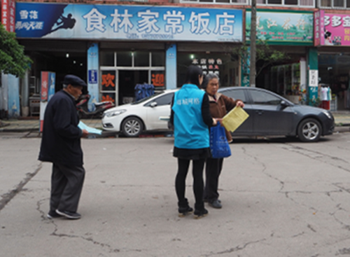 另一边,社区的工作人员也在向路过的群众发放宣传资料并耐心讲解。