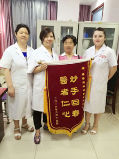 红色锦旗上写着“医者仁心,妙手回春”八个醒目大字,6月14日一早,家住雅安市雨城区的郭婆婆(化名),把这面锦旗交到了咱北二路院区眼耳鼻喉科全体医护人员手中。