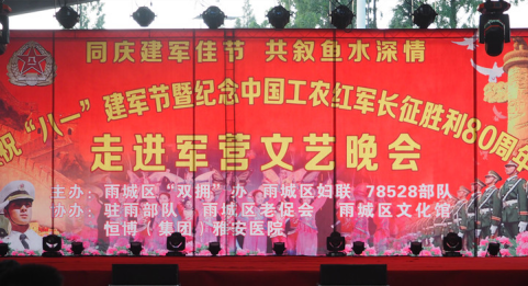 在八一建军节来临之际,雨城区妇联携手区“双拥”办、78528部队筹划的“同庆建军佳节,共叙鱼水深情”大型走进军营文艺晚会于2016年7月28日傍晚隆重举行。恒博(集团)雅安医院作为协办单位之一也是积极参与其中,以实际行动响应区政府的“拥军优属”号召。