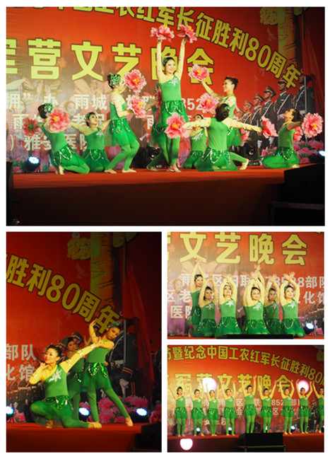 在开场舞《幸福战歌》中晚会正式拉开帷幕。会上首先由雨城区区委常委、人武部政委张洪作简短致词。他表示希望今后能通过更多类似的军民共建活动促进感情交流,达到社会和谐、其乐融融,并宣布演艺节目正式开始。