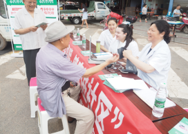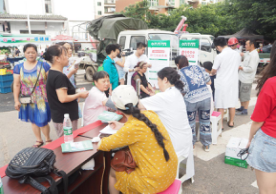早上8.00点,医务人员早早的就到了义诊地点,活动一开始,医护人员便紧张地忙碌起来。他们认真地为居民测量血压、号脉,并告知每位到场的受诊人员“今年的天气闷热,气温不定,在家里的注意防中暑工作”。并根据各自不同的身体状况告知了建议。同时,活动现场还为居民们发放耳鼻喉科的小册子,中西医结合科的免费拔罐体验卡和宣传材料,这一举动受到大家的一致好评。