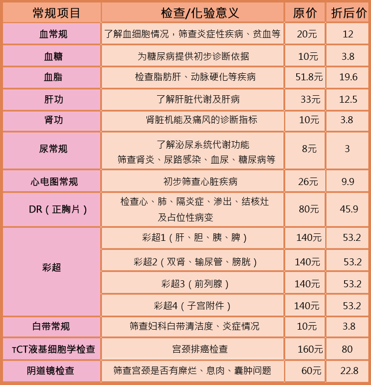 二重礼:常规检查、化验费3.8折(特殊检查、化验除外),检查省钱又省心!