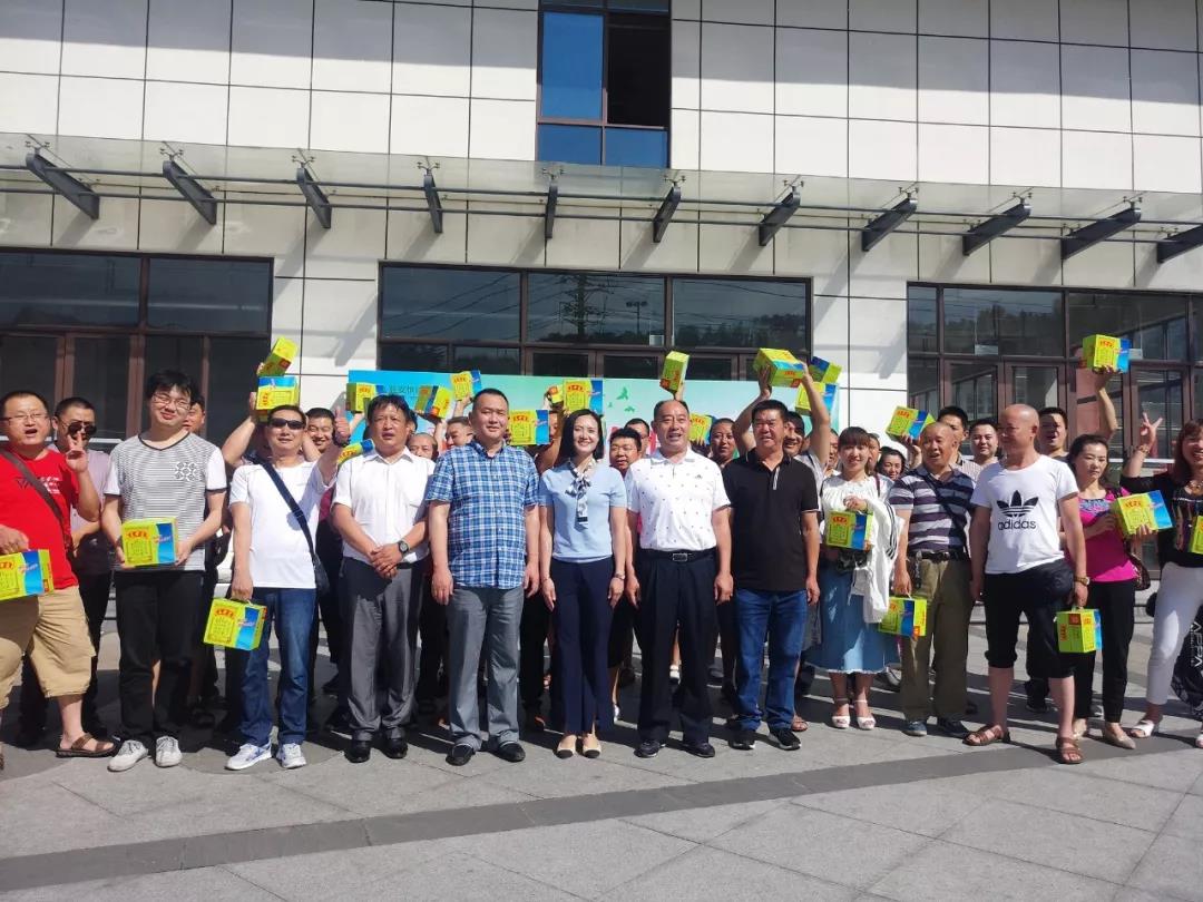 赵娜院长、各出租车公司领导为现场出租车司机发送凉茶,及集体大合影。