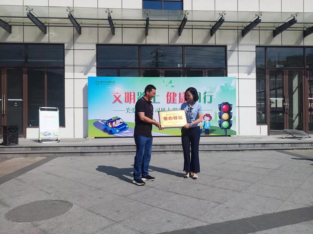 雅安市出租汽车行业协会授予雅安恒博医院“爱心驿站”牌匾。