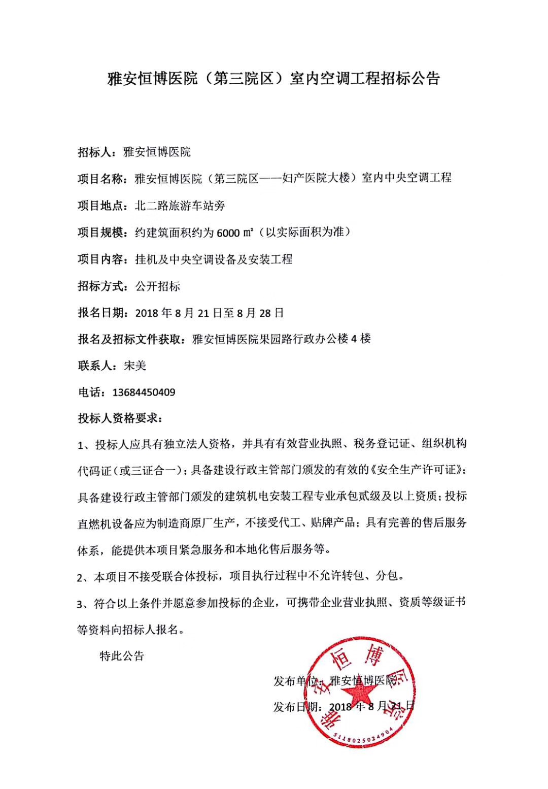 项目已完成主体工程,现对该项目的室内空调工程进行公开招标。诚邀有相应资质的投标人报名参加!