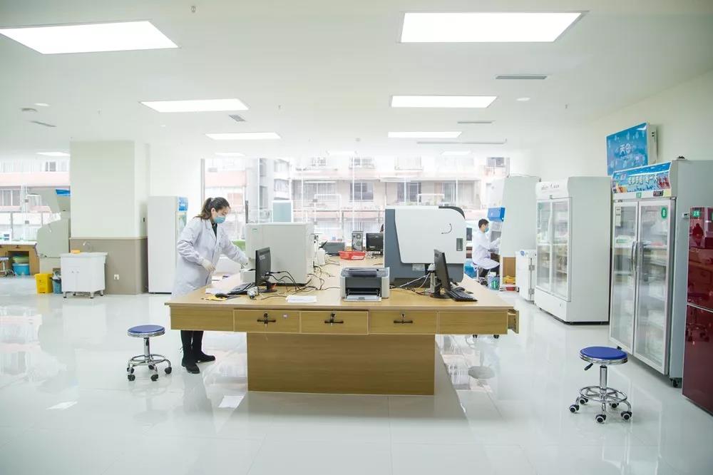 休息区旁边是检验科。雅安妇产医院检验科,检验设备和用材全部按照三甲医院的标准配备。