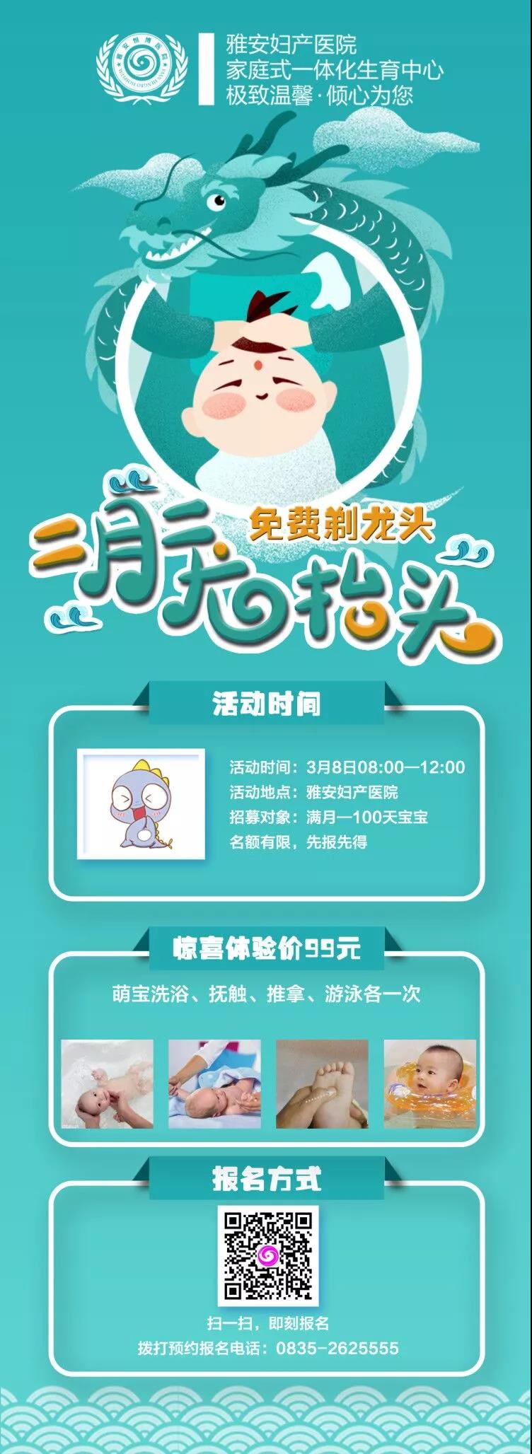 1、成功报名可享宝宝免费剃胎头(满月——100天宝宝,成功报名即可享受3月8日免费剃胎头,报名日期:2月26日~3月7日)