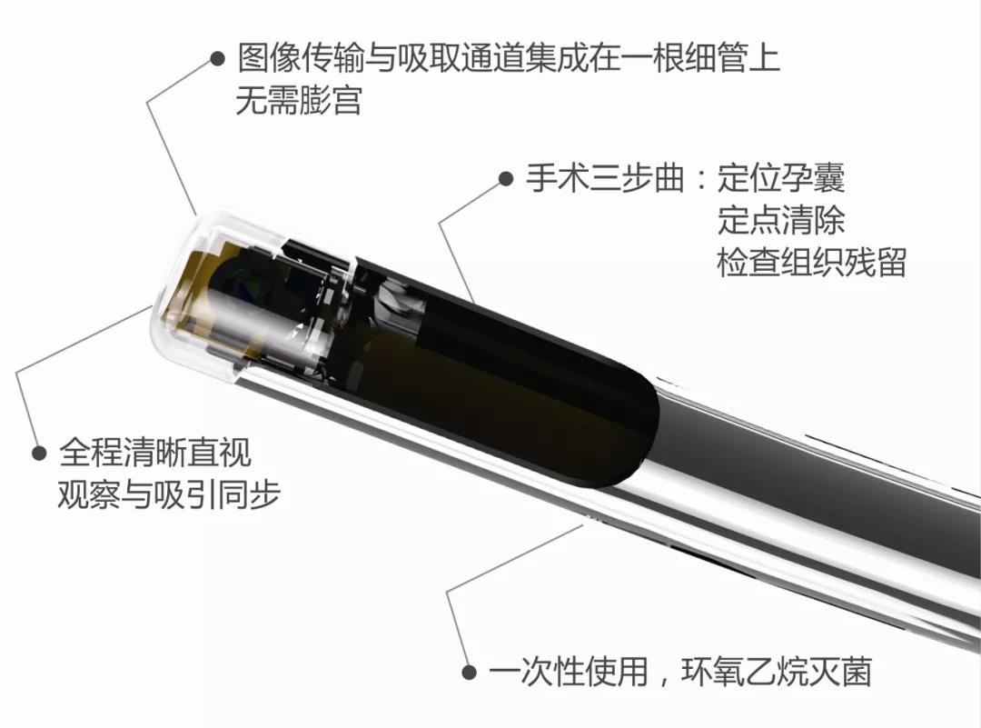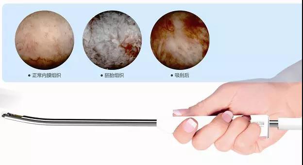该手术系统由一次性摄像吸引管和内窥镜影像工作站组成,直视观察宫腔形态,看到孕囊后实行定位孕囊→定点清除→检查宫腔。