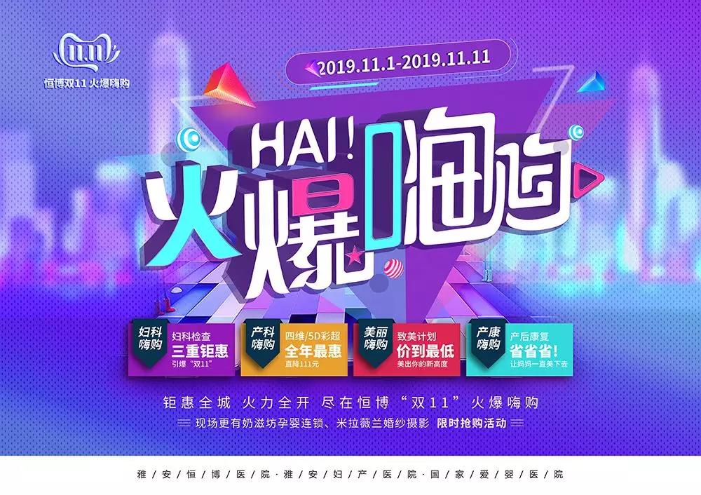 雅安恒博医院“双11”健康“嗨购节”,四维/5D史上最低价!